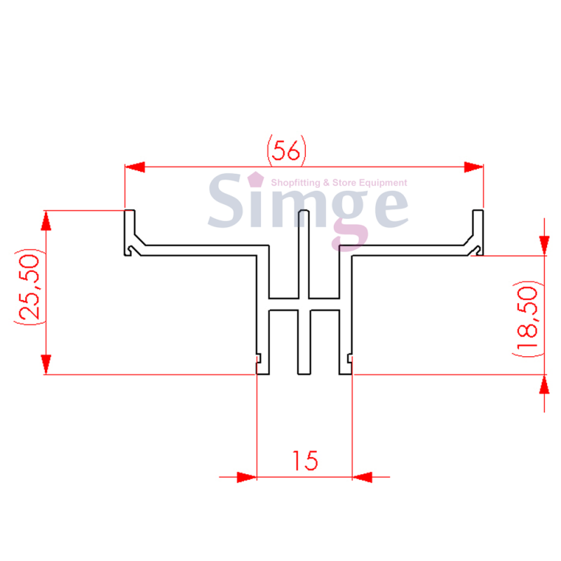 Mağaza dekorasyonlarında, Ahşap panel li duvar raf sistemlerinde kullanılan Çift Slotlu Aluminyum Profillerdir.